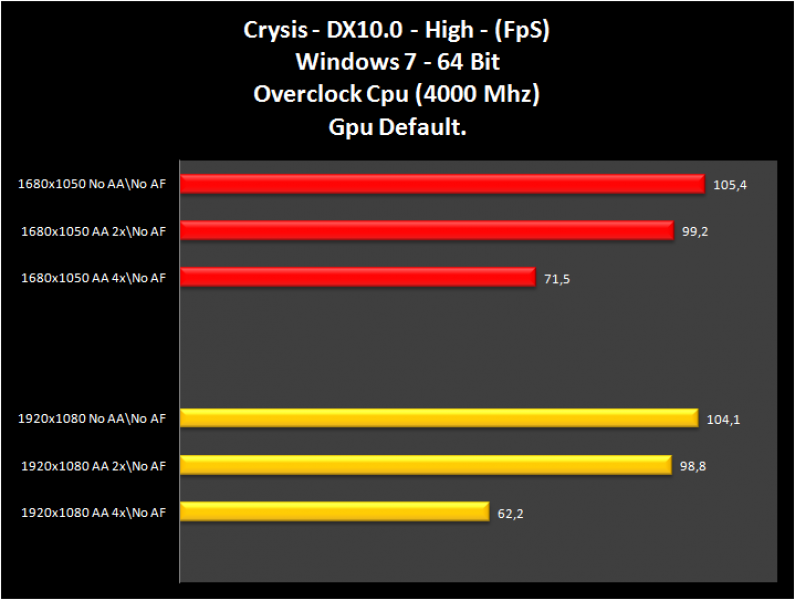 La scheda video fa girare in maniera soddisfacente giochi come “Crysis e Crysis Warhead”, anche applicando filtri. Il tutto in modalità High e in DirectX10. Non se la cava niente male anche impostando la modalità VeryHigh, anche se il calo dei Frame si avverte, specialmente applicando i filtri.